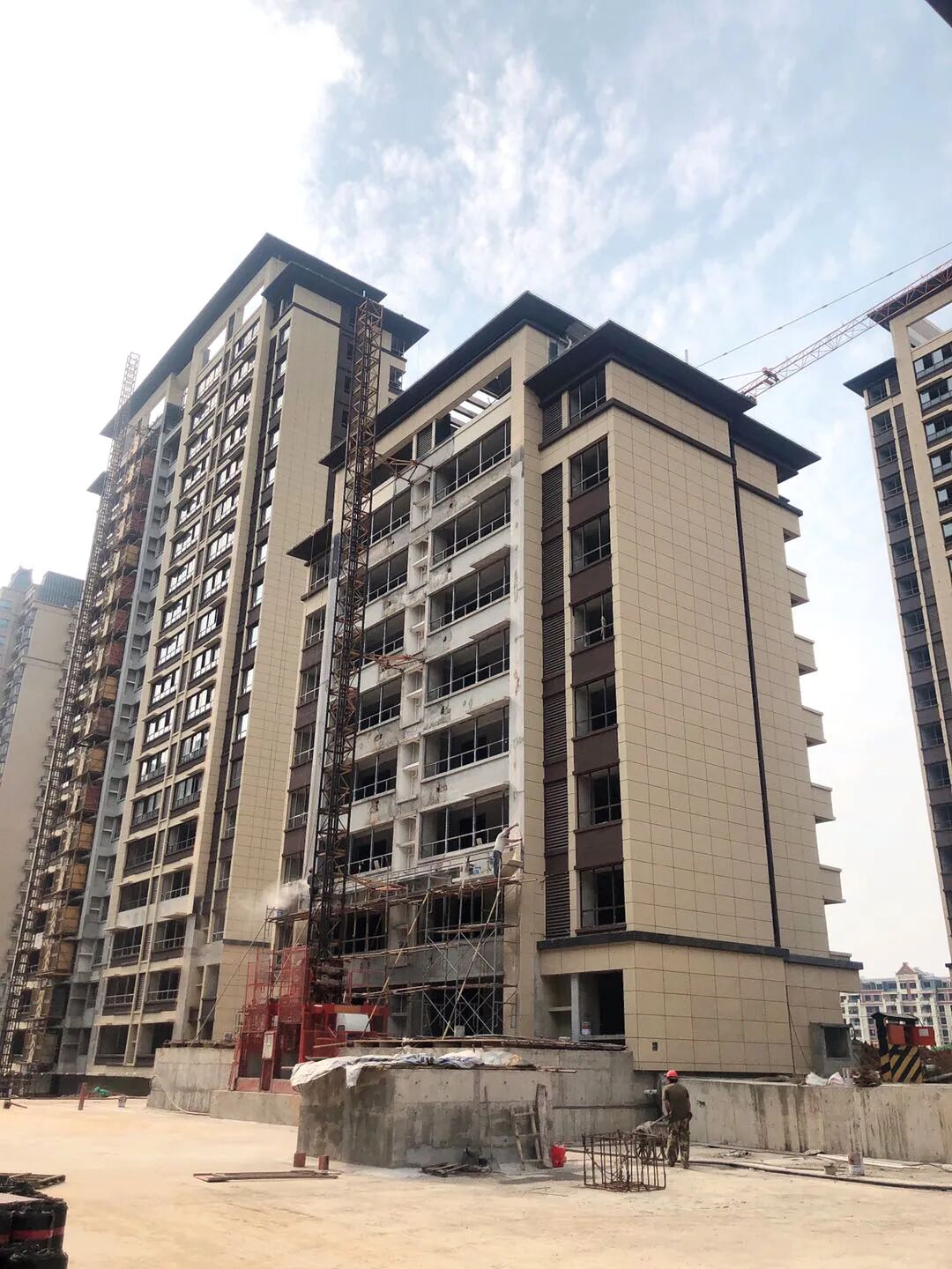 华盛·江山御府工程进度播报 1-10#楼外立面施工接近完成 ▲ 1#2#楼 ▲3#5#楼 ▲6#7#楼 ▲8#9#楼 ▲10#楼 其余楼栋都在快速建设中 高层17#楼已结构已封顶 外架未拆 ▲ 17#楼 洋房18#22#楼已结构封顶 外架未拆 ▲ 22# 18#楼